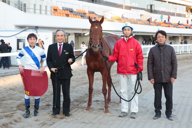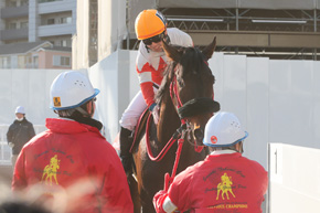 実は、このシカゴジャズを担当しているのは、岩手で騎手をしていた山崎進厩務員。普段から調教にも乗っている馬で、岩手の後輩に当たる山本騎手に、レースではバトンを渡したかたちだ。