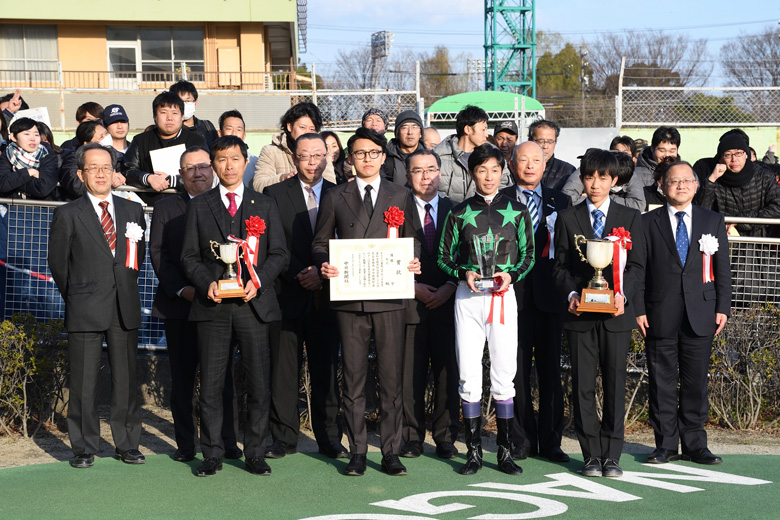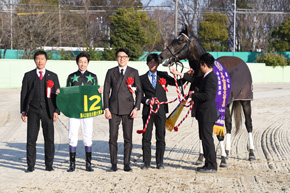 前走の名古屋グランプリでは物見をしていましたが、2回目の今日はいい意味で落ち着いていて、いい状態でした。前走は先頭に立ってフワフワしていたので、2~3番手でもいいのかな、と騎手と話していました。4コーナーでは前進気勢もあり、安心して見ていられました。強い競馬をしてくれましたね。