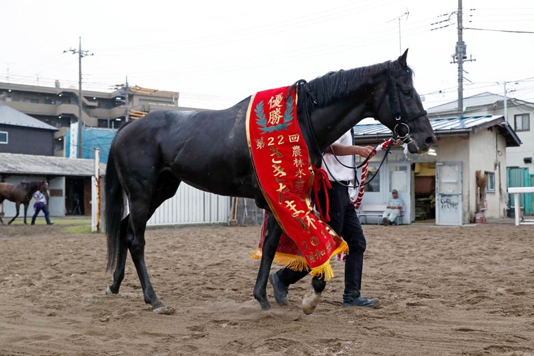そして、大健闘だったのが3着に入った地元浦和のアンサンブルライフだ。的場文男騎手の渾身の追い込みは迫力満点だった。この馬は的場騎手が2歳の時から能力を買っていた馬。「力があるのに最近は真面目に走っていなかった。今日は本気を出してくれたね」と納得の表情だった。
