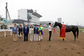 大接戦をモノにし、見事1番人気に応えたサクセスエナジー。前走のかきつばた記念JpnⅢに続きダートグレード2連勝を飾った。北出成人調教師によると、2走前の敗戦で馬込みがダメなことが分かったということで、「内枠だったので行けたら行く、無理なら道中で外に出すという競馬を松山騎手にオーダーしましたが、ひやひやして見ていました」とのこと。今回は決してベストな条件ではなかったが、勝ち切ったということは今後に繋がるに違いない。「まだまだ強いメンバーとあたると思いますがここまできたらジーワンを勝ちたいですね」と北出調教師は笑顔で語った。この後は、プロキオンステークスGⅢ(7月8日・中京)を視野に入れて調整するそうだ。
