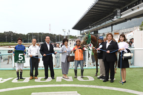 第1戦ファイティングジョッキー賞は1230メートル。スタートから1コーナーまでが短い中、「外の馬に行かれるなら自分が」と吉原寛人騎手(金沢)が先手を奪った。2番手には外から岩田康誠騎手(JRA)、その後ろは馬群がかたまり1コーナーに入った。直線では吉原騎手が必死に粘るところ、中団外からスワンナプームと戸崎圭太騎手(JRA)がゴール前でクビ差、差し切った。同馬を管理する田中範雄調教師は「スタートで立ち遅れたから終わったかと思ったけど、さすがやね!」と名手の腕を称えた。