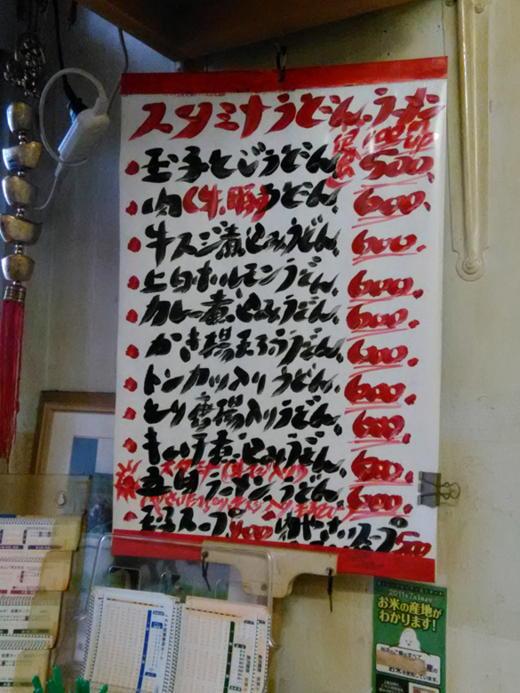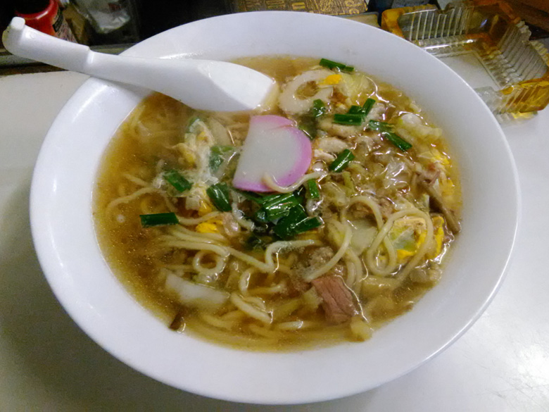 夕方になって寒さを覚え、戦いのさなかにひと息入れるために向かったパドック奥の食堂街。そのなかにある「世界館」は、私がときどきお世話になっているお店です。ここに入るとカレー系とか焼肉系を注文するのですが、今日の気分はちょっと違う感じ。うどんがあるのは知っていますが、ラーメン系ってありましたっけ?