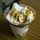 まずはお店の横にあるイートインエリアで写真撮影。ここで食べてもいいのですが、せっかく指定席があるので、そこまで運ぶことにしました。