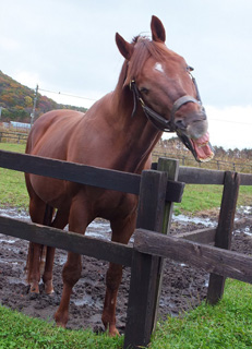 荒木さんの牧場にはサポーターズのオリオンザサンクスやエスケープハッチの他にも、トーシンブリザードやブライアンズロマンも暮らしていて、いつおじゃましても地方競馬ファンにはたまらない豪華な空間が広がっています。オリオンザサンクスも現役時代以上に大きくなった体をゆさゆさ揺らしながら、のんびりと青草を食んでいる姿は幸せな光景。とても穏やかな時間が流れています。