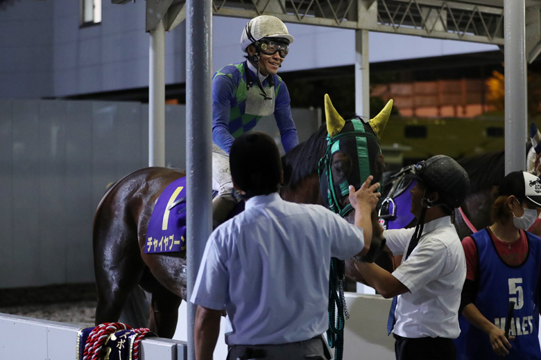 レース後の検量室前では、岩手で管理していた千葉幸喜調教師も応援に駆けつけて喜ぶ姿もあった。チャイヤプーンは当初からの予定通り、数日後には岩手へ帰り、不来方賞からダービーグランプリを目指すことになるそうだ。