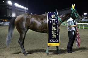 一方、黒潮盃を制して2番人気に支持されたクロスケは、笹川翼騎手が疾病のためレース直前、川島正太郎騎手に騎乗変更となり、9着に終わった。この後は短期のリフレッシュ放牧に出る予定で、状態を見て、ダービーグランプリや武蔵野ステークスGⅢなどを視野に入れていくそうだ。今回は残念な結果に終わったが、ハードな南関東クラシックロードを前哨戦から戦い続け、この夏場も走り抜いた。「こんなに丈夫な馬には初めて会いました。大した馬です」(柏木一夫調教師)。クロスケのここまでの奮闘も労いたい。