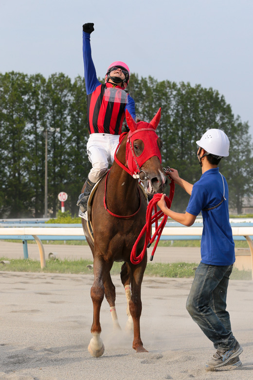 今日は外枠でしたから、吉原騎手がどこかで奇襲をかけるのではと思っていたのですが、まさかあんな早くから行くとは。でも息が入る走りでしたし、向正面に入ったところで『勝つかな』と思いました。先手を取ると真面目に走る馬で、自分としても期待していたのですが、今日は本当に騎手のおかげです。