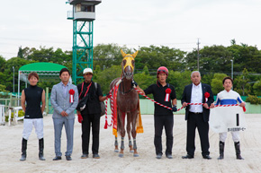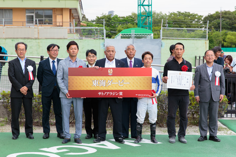 また笠松所属馬の東海ダービー優勝は2010年のエレーヌ以来。いまや東海のトップトレーナーの一人である笹野調教師だが、名古屋競馬での重賞制覇は初めてとのこと。「笠松の馬はなかなか勝てないので、そういう意味でも嬉しいです。ダービーを勝てたことですし、これからは全国的にファンに愛されるような馬を作っていきたいです」と今後の抱負も語った。