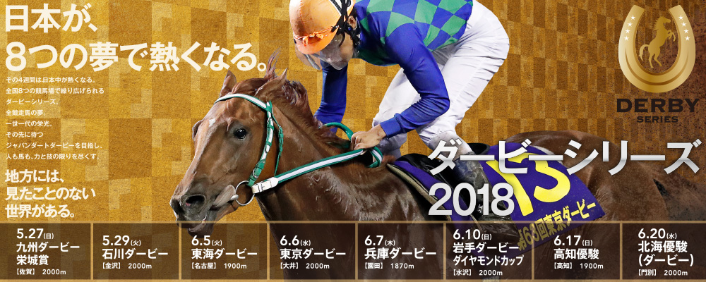 3歳ダートクラシック路線の頂点であるジャパンダートダービー(JpnⅠ)(7/11大井)に向けて、全国の3歳馬たちが鎬を削る「ダービーシリーズ2018」にご期待ください。