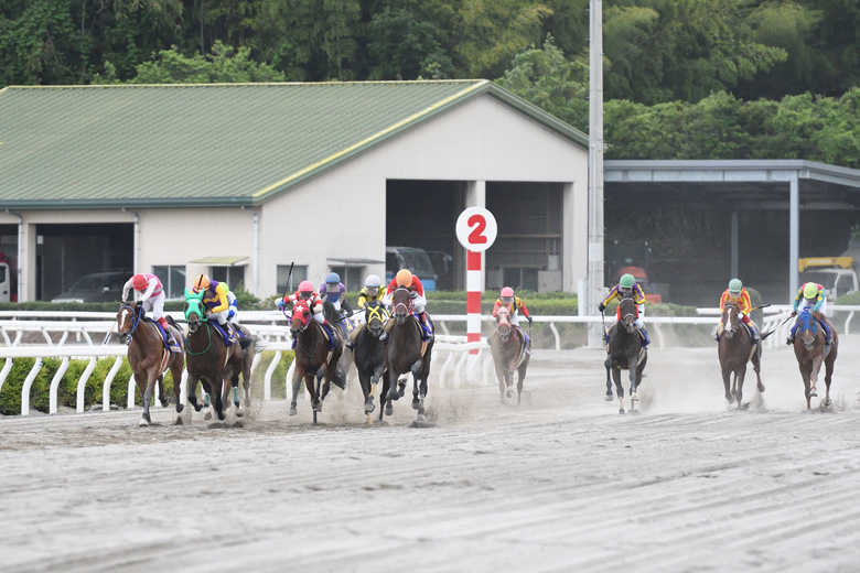 2周目の向正面に入ったあたりからペースが上がり、3コーナーではノブイチを加えた6頭がほぼ一団になっての追い比べ。しかし今年の高知優駿を制したのは、そのうしろから差を詰めてきたスーパージェットだった。