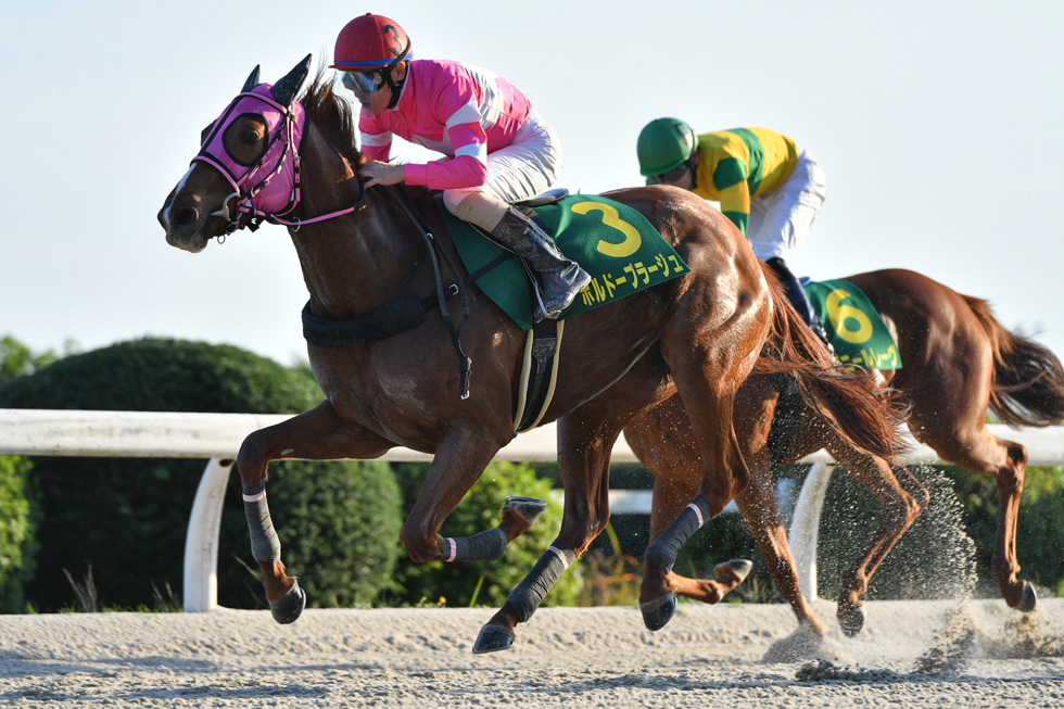 とはいえフルゲート10頭中、他地区からの遠征馬も含めて半数の5頭が門別デビュー組。その中の1頭で、笠松転入後、秋風ジュニア、ジュニアクラウンと準重賞を連勝しているボルドープラージュが断然人気にこたえて強いレースを見せた。