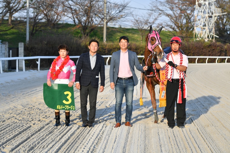 そして直線、ボルドープラージュが振り切ると、アヴニールレーヴに1馬身半差をつけての勝利。後続勢から差を詰めてきたのが岩手のボルドーシエルで、ゴール前、2頭の脚色が鈍ったところに迫ったが、2着馬に半馬身差届かずの3着。5馬身離されての4着は浦和のティーズビーチだった。