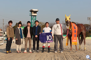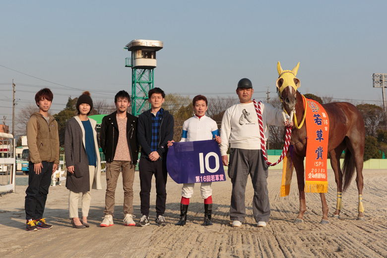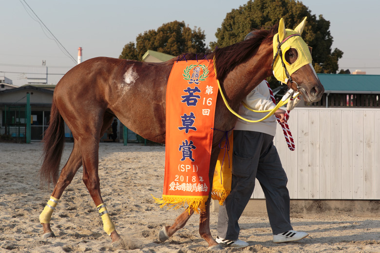 「いつも3コーナーくらいまであまり真剣に走らないんですけど、そこからエンジンがかかったら速い。前回名古屋に来たとき(梅桜賞)は先行有利の馬場で、今回は差しが効く感じだったので、この馬にはいい馬場だと思っていました」と大山真吾騎手。