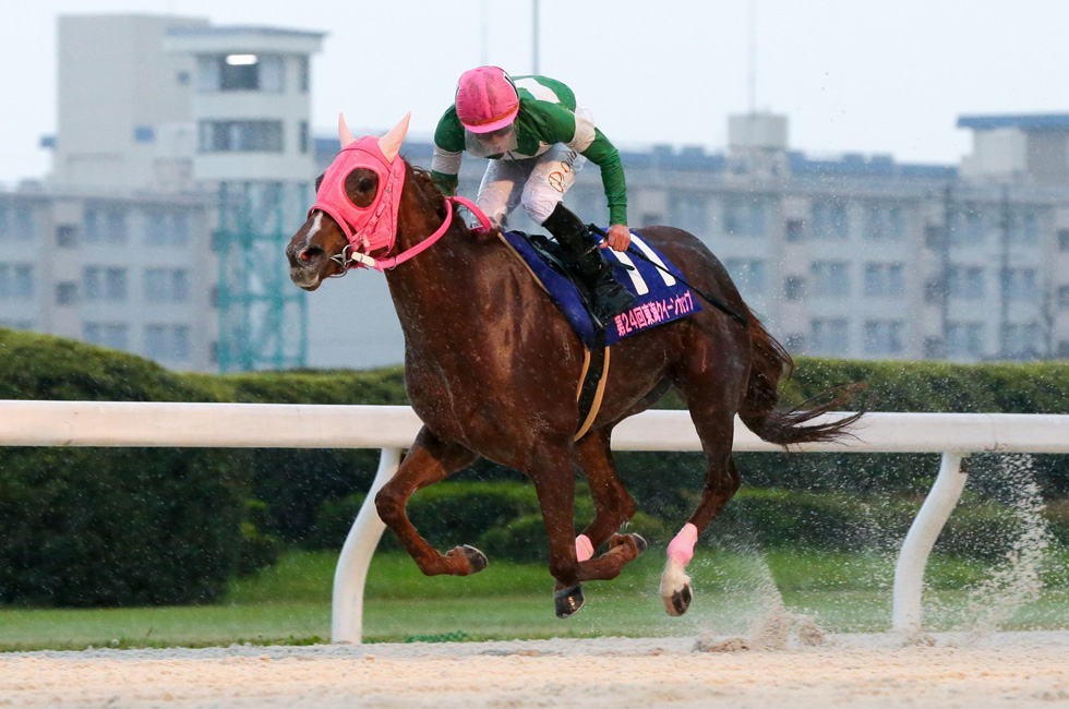 パドックに出走馬が登場する直前から雨足は強まり、ファンは屋根の下に集まって出走馬を見つめた。レコパンハロウィーは当初から予定していたローテーションで佐賀のル・プランタン賞から中8日。長距離輸送明けで、しかも今回は渋滞に巻き込まれ、普段より輸送に1時間半余計にかかったというが、プラス7キロとしっかりとした馬体を見せた。繊細で、ちょっとした環境の変化などで食欲が落ちやすいこの時期の3歳牝馬だが、大きく馬体を減らした馬はいなかった。