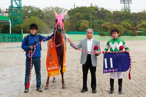 ゲートの中もわりとおとなしく、スタートを決められてよかったです。離れた2番手で、いい感じのレースができました。2着馬が迫ってきた時も手応えが十分残っていました。思っていた以上に強い内容でしたね。華奢な牝馬なので距離がどうかな?と不安に思っていましたが、こなしてくれました。