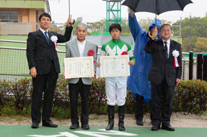 向正面に入ると自然な形でウォーターループが先頭に立った。それを目がけて迫ったレコパンハロウィーが3コーナーを過ぎて並びかけてきた。「チラッとレコパンハロウィーのメンコが見えて、『もうここかー!』と思いました」と友森騎手。4コーナーでは一騎打ちの様相。レコパンハロウィーの大山騎手が「直線でもう一伸びする」と期待を寄せ脚を伸ばす。しかし、ウォーターループが止まらない。「直線半ばを前に『勝てる』と思いました」と友森騎手。3馬身差をつけてウォーターループが1着でゴールした。2着にレコパンハロウィー、クビ差で3着は後方から追い上げたプラチナクインだった。