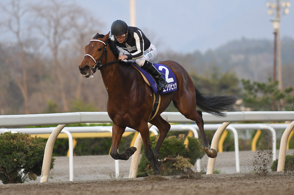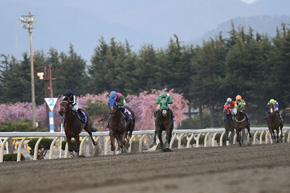 水沢競馬場名物である、満開の桜並木をバックに留守杯日高賞が行われた。近年のグランダム・ジャパン(GDJ)シリーズで勝ち星を量産する北海道・田中淳司厩舎から、昨年も水沢でプリンセスカップを勝ち、GDJ2歳シーズンを優勝したエグジビッツが登場。単勝2.0倍の人気を集めた。