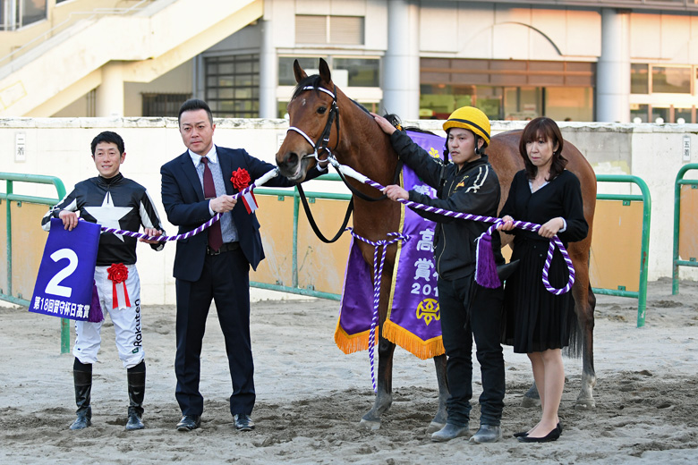 ここを逃すとポイントが苦しくなるので良かったです。前走は休み明けで調教を積んで馬体減となり、結果を出せませんでした。戦ってきたメンバーから浦和の馬が怖かったので、1頭マークの競馬。速いペースでしたが、並ばれてからもうひと伸びしてくれました。次走は園田ののじぎく賞へ向かいます。