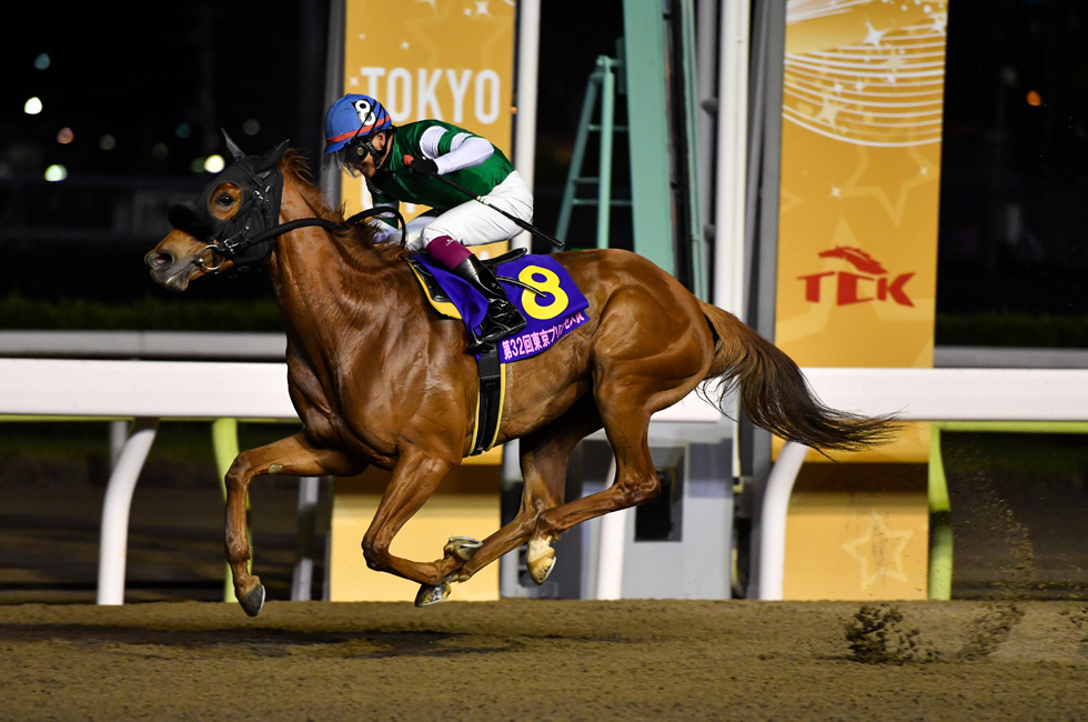 近年の南関東3歳戦線では、中央からの転入馬の活躍が目立っている。2016年に東京ダービーを制したバルダッサーレに、昨年の羽田盃を制したキャプテンキング。ともに中央からの転入初戦で南関東クラシックを制していた。プロミストリープも同じように転入初戦の浦和・桜花賞を制していたが、それらと違っていたのは、中央で無敗のまま南関東に移籍してきたということ。その桜花賞は、スタートで出遅れ3~4コーナーでもまだ7番手、水の浮く不良馬場という厳しい条件に加え、浦和の短い直線でも余裕の手ごたえで差し切っていた。その馬が相手ではかなわないと見て、1週前の東京湾カップに矛先を変えた有力牝馬もいたほど。