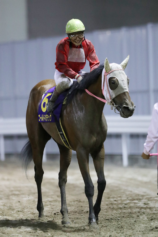 ペースが流れていたのでちょうどいいかなと見ていて、向正面でも楽に追走できていたのでこれはやれるかなと思っていたら本当に勝ってくれました。思った以上に力があるということなのでしょう。イレ込む馬なのでマイナス体重だけは嫌だったんですがプラス体重で出られました。これが勝因ですね。