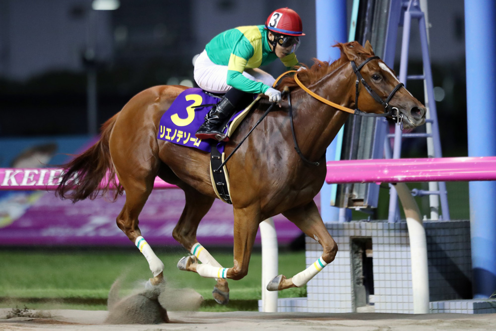 直線でもしぶとい粘りを見せるリエノテソーロ。二枚腰を見せていったん突き放しながらも、再度迫られる厳しい競馬となったが、それでも半馬身のリードを保って先頭でゴールに飛び込んだ。