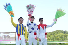 前2頭からは離されたものの3着に入った吉原騎手は、騎乗馬の決定で“グループB”の馬だっただけに、「上出来の3着だと思います」と満足の表情。単勝では1番人気だった桑村騎手が4着。向正面では離れた最後方を追走しながら5着まで追い上げた藤田騎手は、「砂をかぶったら最後方まで下がってしまいました。それでも直線で大外に出したら伸びてくれました」とのことだった。