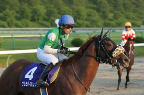 検量室から洗面所にいちばん遅くきた関本淳騎手が、「落ちるかと思った、怖かった」と、これが勝利ジョッキーの第一声。顔を洗ってから話を聞いてみると、これまで岩手での4戦は1600メートル以上で、逃げるか、すんなりの競馬。JRA2勝はともに芝の1400メートルで、21戦中20戦が芝。ダートでもまれる競馬をしたことがない。「逃げるつもりで挑んだけど、スタート直後に砂をかぶってクビを上げたり、ほんとうに嫌がっていて落ちそうになった」と関本騎手が言ったように、3コーナーではまさかの最後方になってしまった。