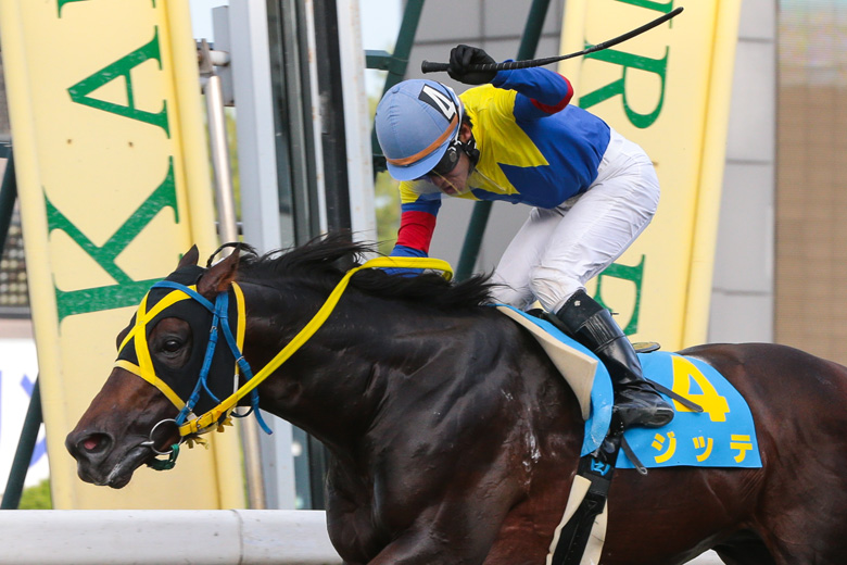 そうなると前にいる馬のほうが有利。直線を向いて残り200メートル付近からはジッテとハドウホウの一騎討ちになったが、ジッテがそのままの勢いで押し切った。ハドウホウは最後まで食い下がったが3/4馬身差で2着。ハイジャは直線半ばから伸びを欠いたが3馬身差で3着に粘った。