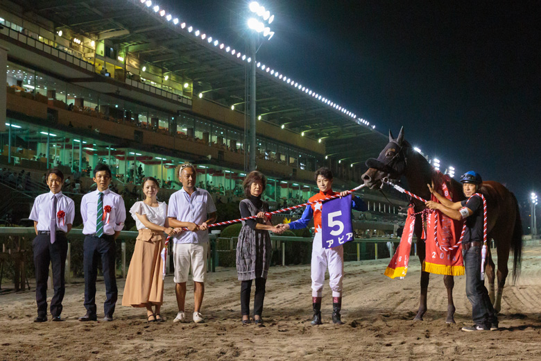「ペースも流れていたし手応えもずっとよかったので、3コーナーからは理想的な展開でした。前のどこが開くのか? 進路だけを探していて、ちょうどいいところが目の前で開いたので突っ込みました」という御神本騎手。着差以上の強さを見せた。2着のクルセイズスピリツに1馬身差をつけ、さらに1馬身差の3着には高知のサクラレグナムが入った。勝ちタイムは1分00秒3(良)。