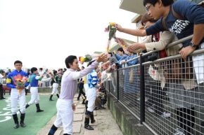 西日本地区でのトライアルラウンドは名古屋と園田を残すのみ。今回の名古屋が最終戦となる騎手が多いなか、田村直也騎手(兵庫)はここが今年の初戦となった。「肩甲骨の骨折で休んでいましたが、もう万全です。ただ、実戦感覚という点は不安ですね」と話していたが、騎手紹介式では「少しでも足跡を残せるようにしたいです」と、久しぶりの遠征に気持ちが高ぶっている様子だった。