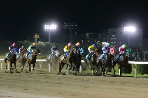 ゲートが開くと先行争いが激しくなったが、最内枠のアドバンテージをいかした菊澤一樹騎手(JRA)が先頭に立ち、木幡巧也騎手が2番手に。大外枠からスタートした櫻井騎手はコーナーワークで後れを取ったが、向正面に入ったところで先頭争いに加わった。