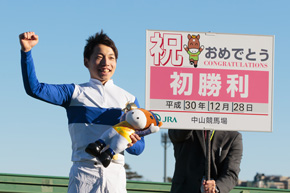 その勝利に服部騎手は「ここに来られたのは運がよかったから。さらに中山でも勝つことができて」とうれしそう。「次のダート1800メートルは、競馬学校時代の模擬レースで勝ったことがあるので、そこからの連勝を狙っていきます」と目を輝かせた。