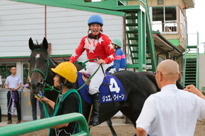 馬体減があったので、今日はもうダメかなという時もありましたね。台風で1日早く輸送した分、エサを食わなかった。いつもより気合いがなく、大人しかったのですが、すごい底力だと思いました。次走は南関東へ移籍して大井のレディスプレリュードへ向かう予定です。