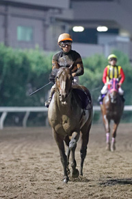 今回のレースは、その進化を確かめる絶好の舞台だった。一見すると、地元同士で得意の大井1200メートルなら勝って当然と思われて不思議はないが、実績のない別定59キロに加え、2日前の豪雨により、この日の大井競馬場は内めが軽い前残りの馬場。立ち回り次第では取りこぼす危険性も十分にはらんでいた。