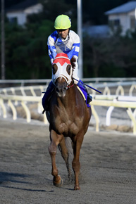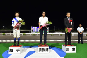 見た目の仕上がりは良いと思ったんですが、乗ってみたら物足りないという感じがありました。赤岡騎手とは、このメンバーだと道中で行き場がなくなる可能性があるので前の位置を取りに行こうと話しましたが、末脚が切れる馬がいたら危なかったかも。今回は人気に応えられて、本当にホッとしています。