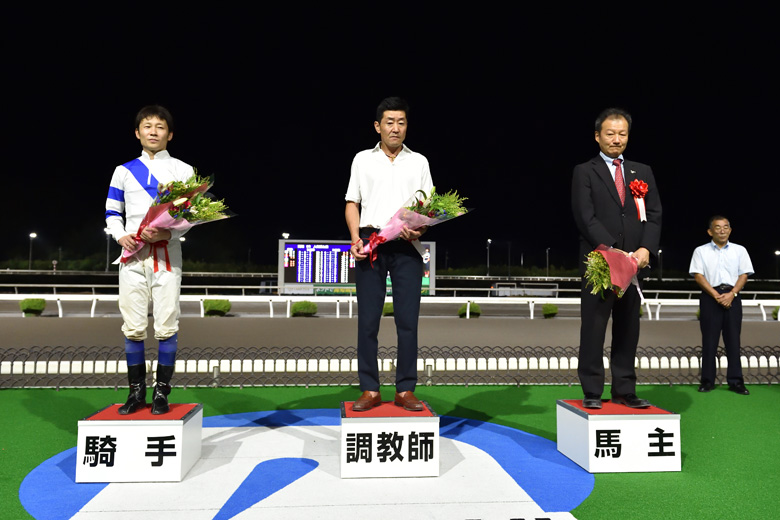 レース終了後に「スタートがよかったのがなにより」と、勝利を挙げた赤岡騎手が笑顔で話す一方、「距離が長い分もありますし、道中の流れが緩くなったのも響きました」と、2着に敗れた西川敏弘騎手は悔しそう。3着だったチャオの岡村卓弥騎手も「勝負どころから“用意ドン”の形になると、これが精一杯」、4着だったキープインタッチの永森大智騎手も「動きにくい位置にハマってしまいました。行く馬がいなさすぎてペースが遅かったのもキツかったです」と、その流れには苦労したようだった。それだけに今回は、早めに動けるイッツガナハプンの総合力が上回ったということなのだろう。