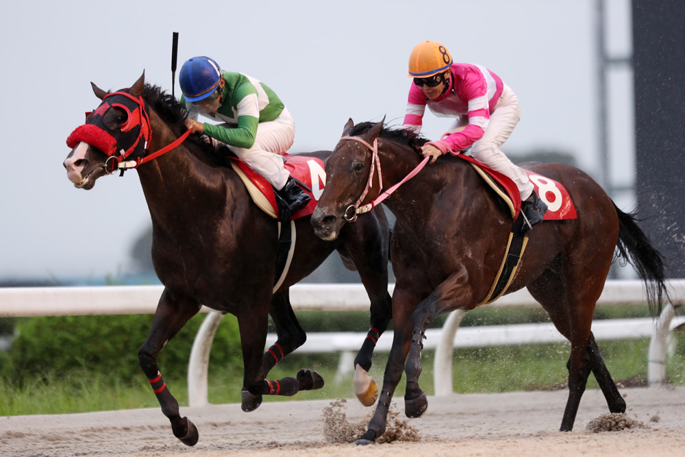 それでもメモリージルバは手応えに余裕がある雰囲気で、4コーナーの手前で先頭に。しかしその直後にアリオンダンスが迫ってきた。最後の直線入口では、インコースのメモリージルバとアウトコースのアリオンダンスがほとんど並んでのマッチレース。その争いはホームストレッチをフルに使って繰り広げられた。