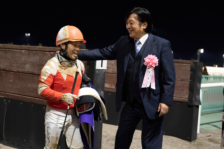 輸送競馬でも馬体重が増えていたように、少し立派な馬体に映りました。その分、道中の反応がひと息だったかもしれませんが、目標に置いたレースを勝つことができ、ホッとしています。ここを勝てば、JBCスプリントに挑戦したい思いをオーナーに伝えており、前向きに検討する流れになると思います。