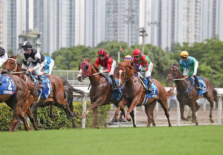 断然人気は、昨年末の香港カップを制し、前走クイーンエリザベスⅡ世カップでは日本のウインブライトの2着だったエグザルタントで最終的に単勝1.5倍。2番人気は連覇のかかるパキスタンスターで5.6倍。昨年のこのレースでエグザルタントを2着にしりぞけていたが、それ以来勝利から遠ざかっている。今年の香港ダービー4着だったダークドリームが6.8倍で3番人気だが、これは鞍上(J.モレイラ騎手)人気もあったかもしれない。ここまでが単勝10倍以下で、ハッピーグリンは単勝39倍で6番人気だった。