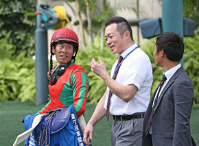 【会田】着地検疫のあと3週間は隔離する決まりがあるようなので、門別競馬場の近くの牧場で3週間過ごしてから厩舎に戻します。次走は札幌日経オープン(8月3日)を予定しています。