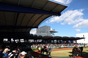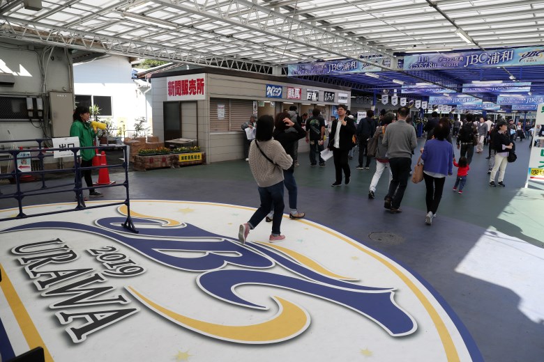 前夜に強い雨が降る時間帯もあったようだが、当日は朝から好天に恵まれた。午前9時を予定していた開門時刻は午前8時半に繰り上げ。その時点で正門の待機列には1,080人が並んでいたという。いわゆる開門ダッシュが予想されたため、50人ずつの入場にするなどの対応がとられた。入場料は無料。通常は入場料を投入すると開くゲートが開放され、それもスムーズな入場につながったようだ。指定席券はすべて前売りで発売。JBCに向けて新築された今年9月オープンの2号スタンド、4コーナーよりにある平成4年1月オープンの3号スタンドともに完売で、指定席券売り場は閉じられ、その前には仮設トイレが並んでいた。