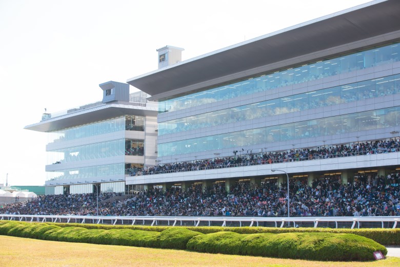 競馬場内のイベントは最小限にとどめられた。馬場の中央を左右に藤右衛門川が流れる敷地。スタンドは河岸段丘の段丘崖に建てられ、出走馬は段丘面にあるパドックから坂道を下って馬場に入場する。もともとイベントを実施できるような場所が少ないうえに、パドック脇の芝生広場には仮設の臨時記者室と馬主下見所観覧席が設置され、通常よりもスペースが限られていた。イベントを最小限にしただけではなく、予想士の場立ち台を通常とは違う正門通路沿いのパドック向きに移動したり、畜産サンプリングキットの配布が行われたテントは配布終了とともに撤去するなどして、ファンが滞留しそうな場所を広めに確保。北門付近で行われたグルメイベント以外は浦和駅東口駅前市民広場でサテライトイベントを行い、場内は純粋に競馬を楽しみたいファンのための空間になっていたと思う。その甲斐だろうか、1Rから直線の攻防に大歓声。早くも見たことのない光景が広がっていた。