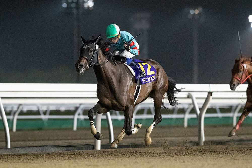 単勝2.2倍のヤマニンアンプリメに対して、2.6倍と差のない2番人気に支持されたシュウジ。デビュー以来芝のマイル以下を使われ、阪神カップGⅡ勝ちの実績があるが、今年からダート短距離路線に参戦して結果を残してきた。ただ地方には今回初参戦。4コーナーでショコラブランに並びかけられると直線では抵抗できず。抜群の手応えだったショコラブランが抜け出すかに思えたが、これらを並ぶ間もなく交わし、突き抜けたのがヤマニンアンプリメだった。