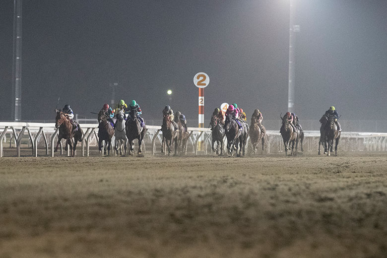 互角のスタートから二の脚の速さで先頭に立ってレースを引っ張ったのはシュウジ。大井のショコラブラン、ヤマニンアンプリメと差なく続き、ノボバカラ、タテヤマら人気上位馬が先団の一角を占めた。