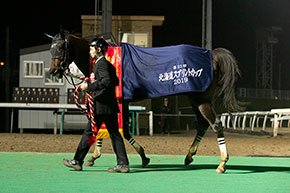 そして地元勢として唯一見せ場をつくったメイショウアイアンの鞍上は、昨年デビューしたばかりの落合玄太騎手。「中央馬が相手でペースがいつもと違うと思って、出していったら少しハミを噛んでいました。それがなければいい勝負になったかもしれません」。大外枠ゆえ3~4コーナーでも大外を回らざるをえなかったこともあり、喜びよりも悔しさのほうが大きい2着だったようだ。昨年まで4年連続北海道リーディングの田中淳司厩舎所属ということもあり、ここまで地元重賞を7回経験しているが、いずれも着外。ダートグレード初騎乗での2着は、今後の自信につながる一戦となっただろう。