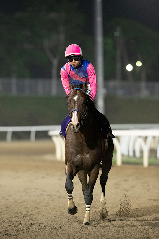 ここ2戦は1400メートル戦を使って、久々(3戦ぶり)の1200のスプリント戦で、あの位置(3番手)から競馬をするとは思ってなかったので心配しましたが、想像以上にすばらしいパフォーマンスでした。馬主さんとの相談になりますが、浦和のJBCに向けてオーバルスプリントを使うことになると思います。