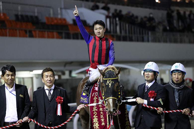 高月調教師はこれまでスパロービートやドラゴンエアルなどでタイトルを手にしてきたが、ダートグレードは初制覇。川崎勢の全日本2歳優駿JpnⅠ制覇は、中央との交流になる以前の1995年ホウシュウサルーン以来となる。高月調教師は「吉原騎手もうまく乗ってくれたし、控えていく競馬もはまった」と冷静にコメントしたが、伝統ある地元のJpnⅠを制した喜びは十分に推察できる。