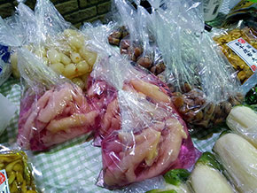 でもひとついえることは、たとえ1000円の漬物でも、ハズレ馬券に比べれば安いってこと(多くの場合)。実際に私も、スーパーで漬物は買いませんが、ここではそれより高くても買いますからね。それはともかく、並べられている漬物の品質は確かなもの。においがするものは袋を二重にしてくれますから、帰りの電車も安心です。
