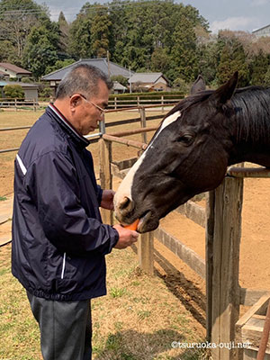そんなオウジが安心して暮らせるようにと、元々のファンだった梶原晴美さんが立ち上げたのが『ツルオカオウジの会』で、会員さんたちがツルオカオウジの馬生を支えています。