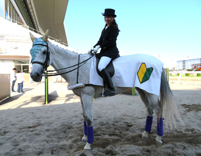 ビービートルネードも現役を引退してから約9年が経ち、今年16歳になりました。現役時代は黒っぽかった芦毛の馬体もすっかり白くなり、ベテラン誘導馬としての貫禄もたっぷりです。
